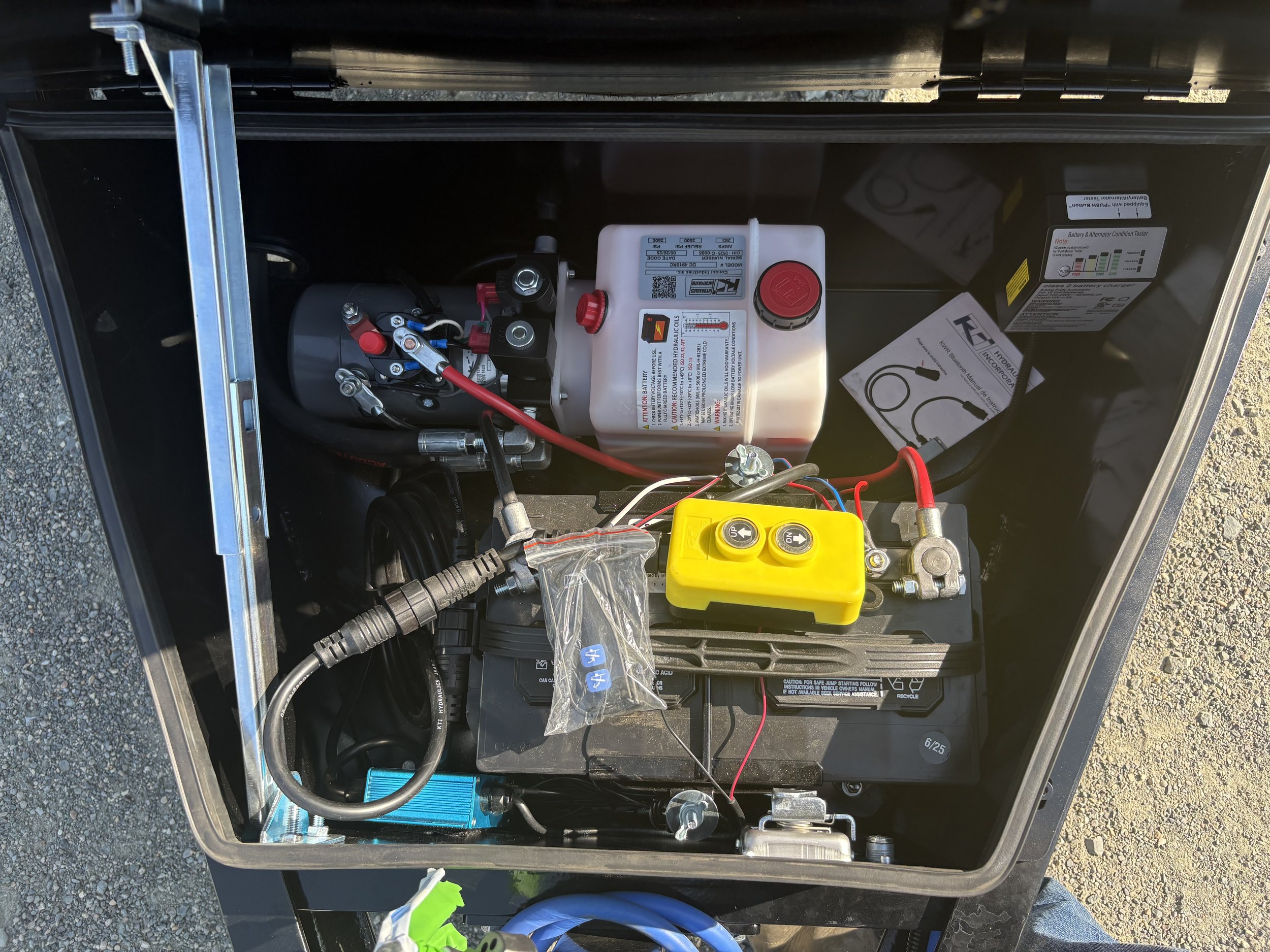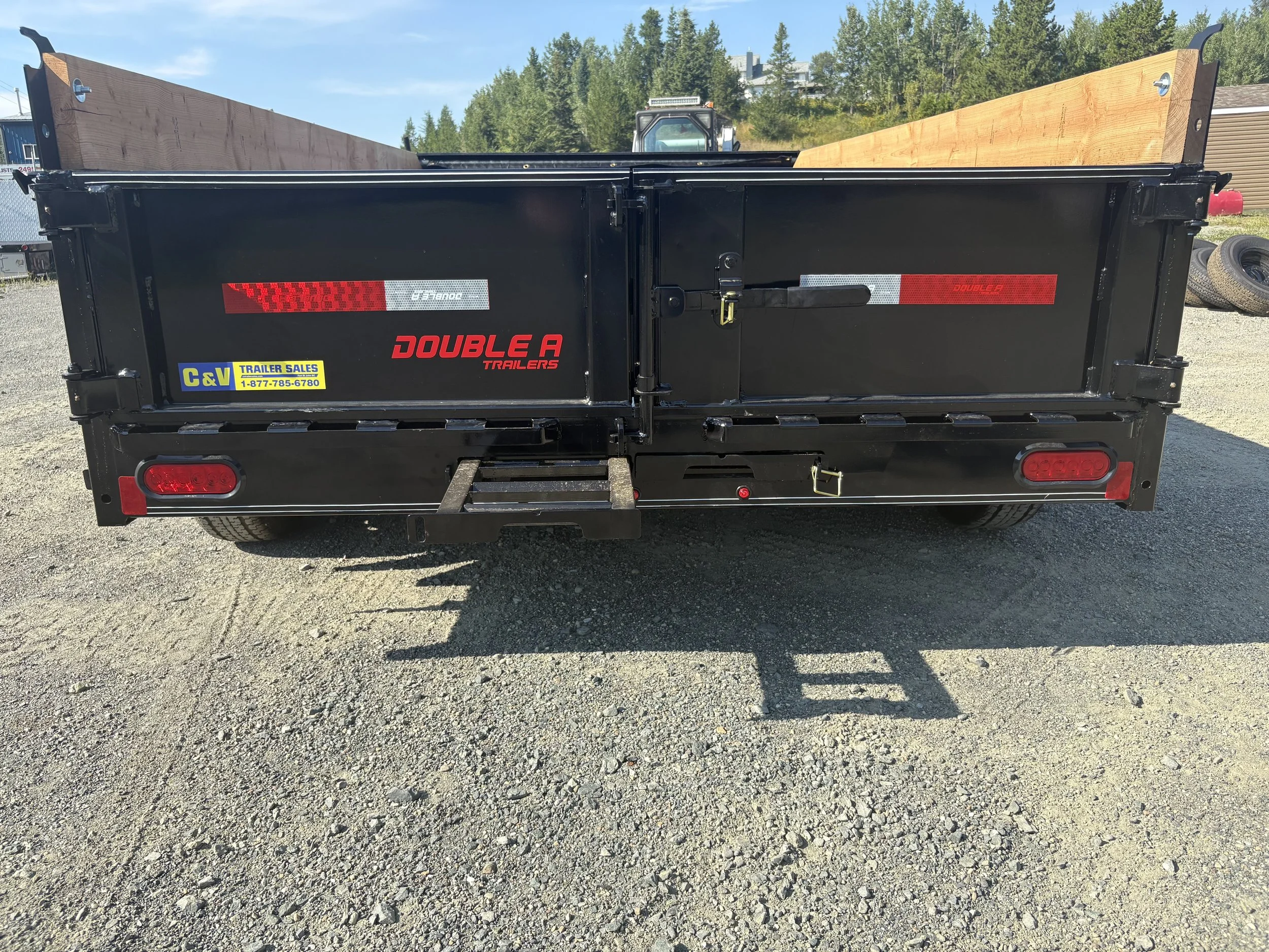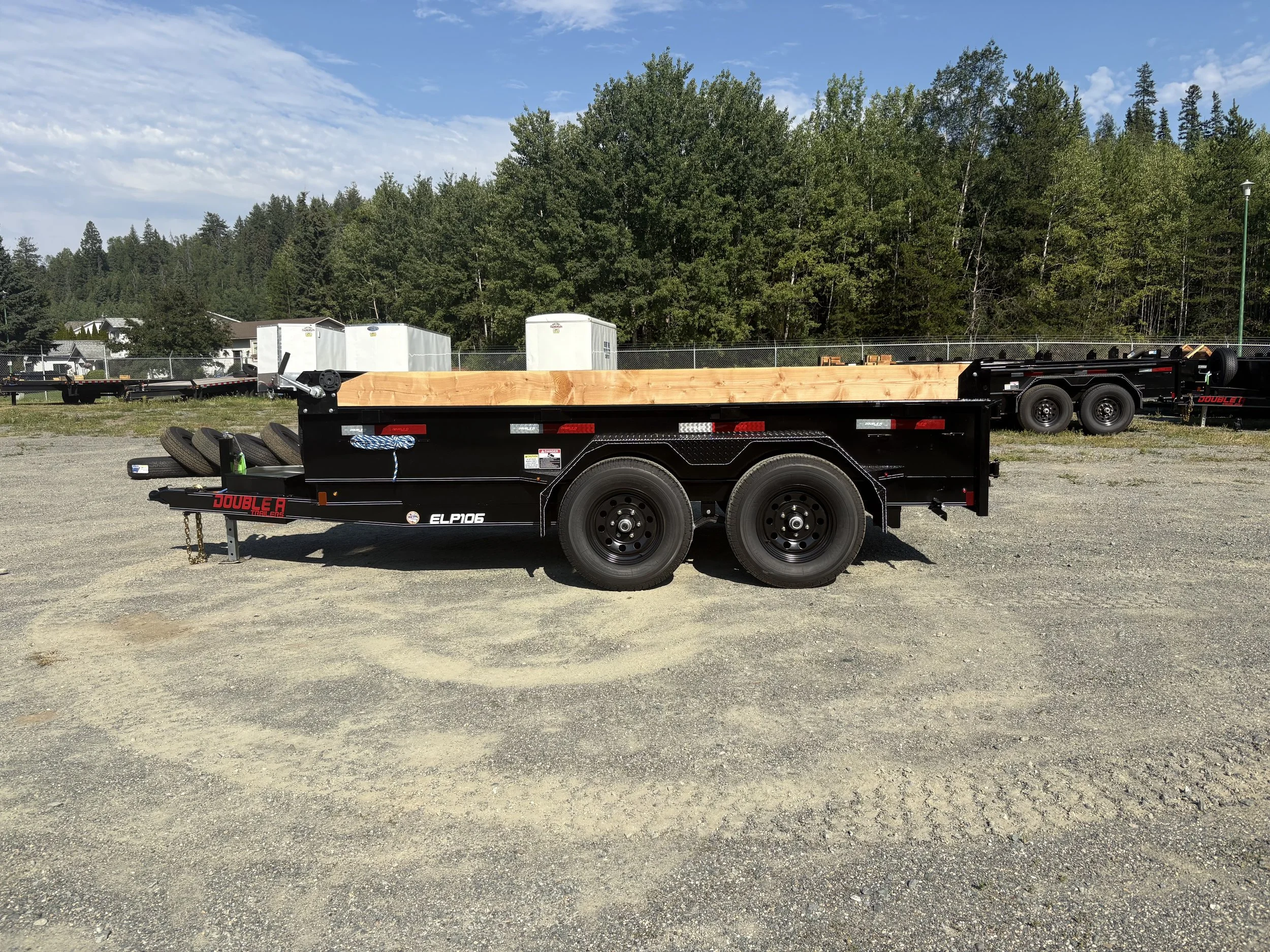 72" x 12' Excel Series tandem axle (GVW 11,500 lb) Low Profile Dump with slide-in ramps and spare tire.